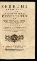 Bottone, Domenico [1641-1698]Neapoli : ex nova Officina Sociorum Dom. Ant. Parrino, & Michaelis Aloysii Muttii, 1692ETH-Bibliothek, Rar 6052Sebethi Vindiciae sive Antonii Vetrani dissertatio de Sebethi antiquitate, nomine, fama, cultu, origine, prisca magnitudine, decremento atque alveis adversus Iacobum Martorellium ...