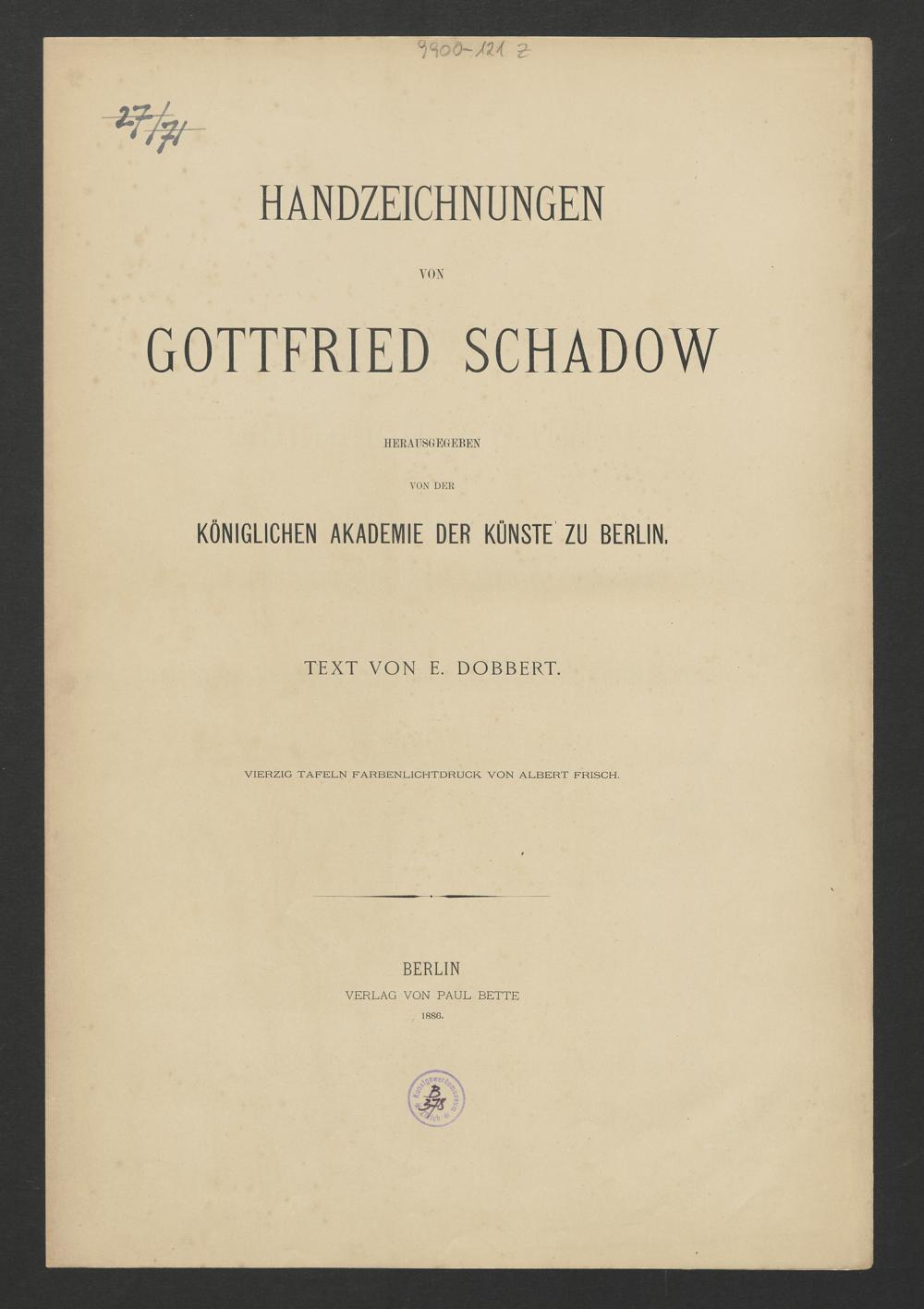 Handzeichnungen von Gottfried Schadow / herausgegeben von der Königlichen Akademie der Künste zu Berlin ; Text von E. Dobbert ;  vierzig Tafeln Farbenlichtdruck von Albert Frisch