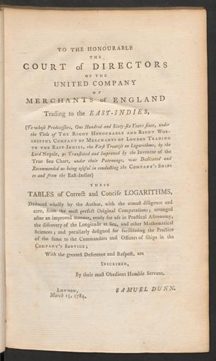Tables of correct and concise logarithms; for numbers, sines, tangents, secants, complements-arithmetical supplements, &c. ... / by Samuel Dunn