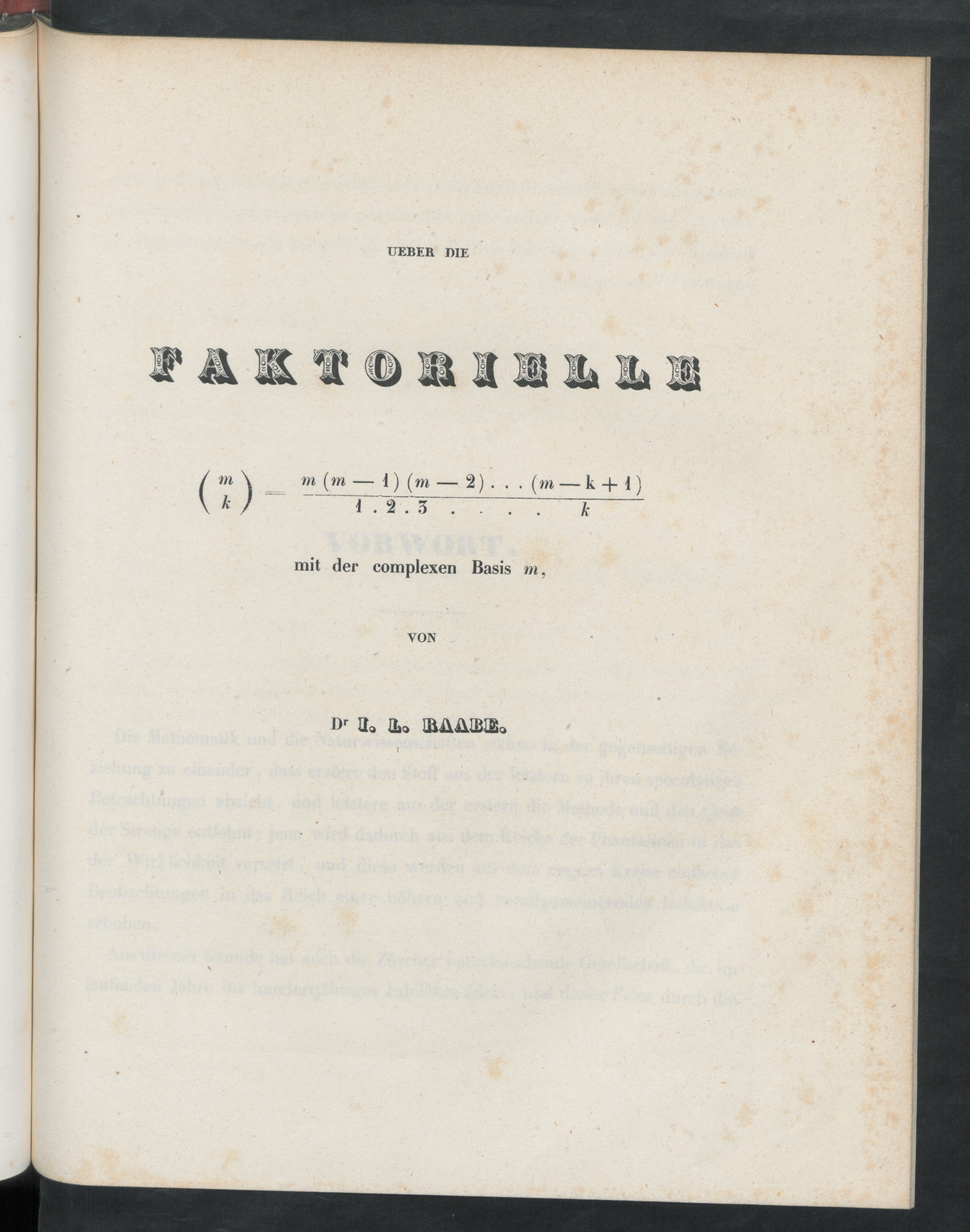 Ueber die Faktorielle (m / K) = m (m-1) (m-2) ... (m-k + 1) / 1.2.3. ... k : mit der complexen Basis m / von I.L. Raabe