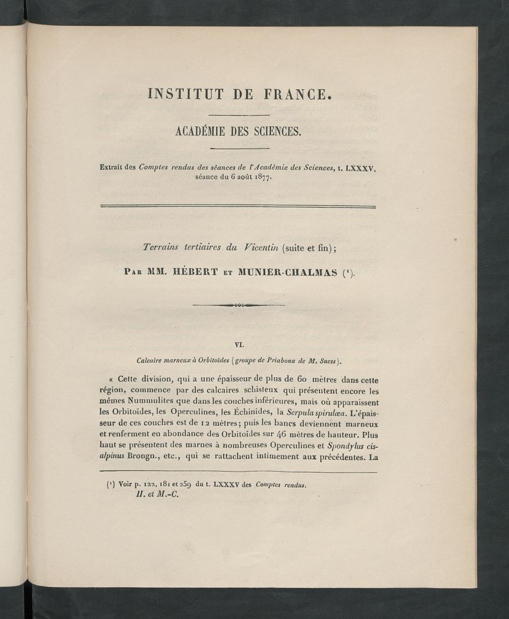 Terrains tertiaires du Vicentin (suite et fin) / Hébert et Munier-Chalmas