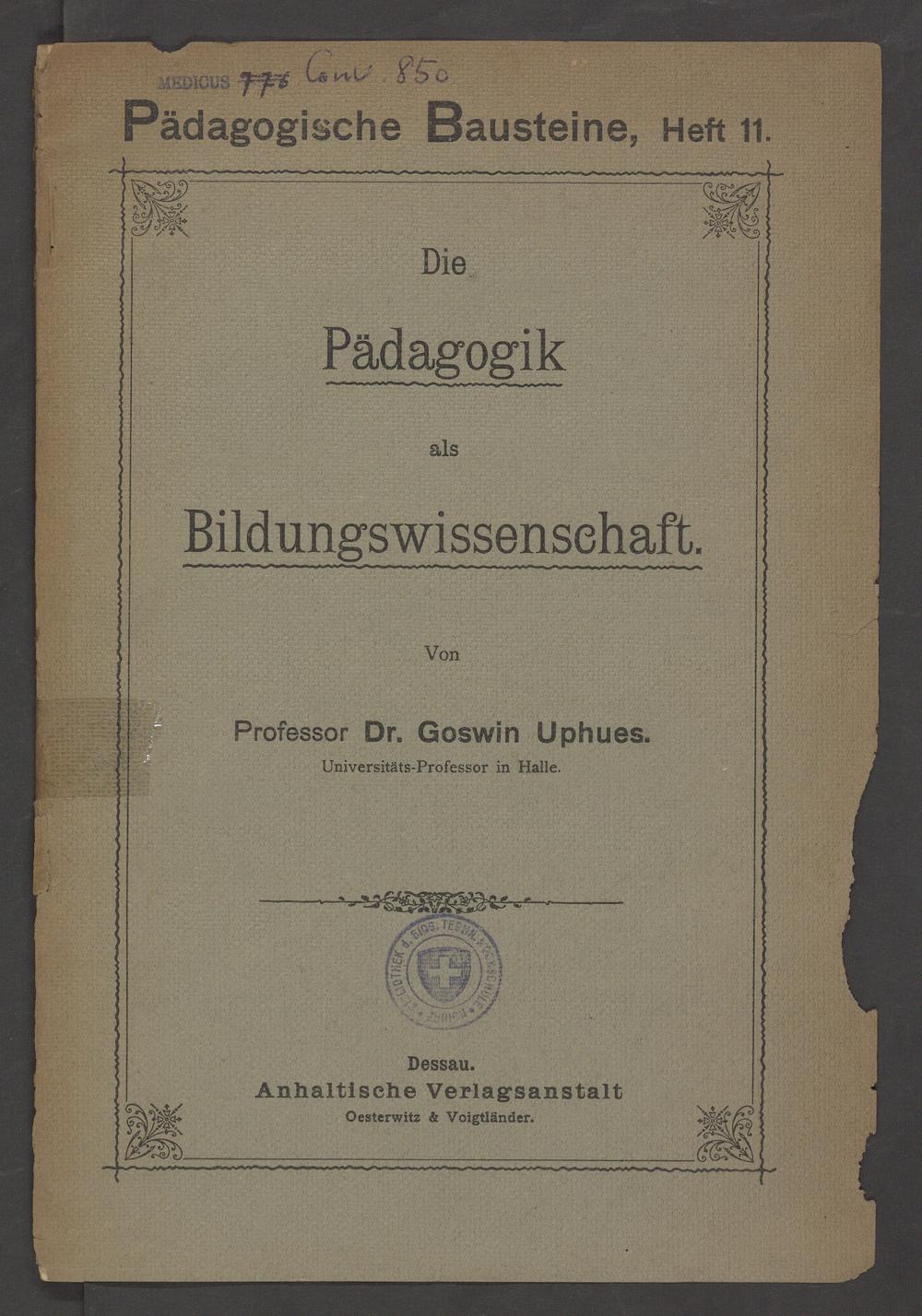 Die Pädagogik als Bildungswissenschaft / Von Professor Dr. Goswin Uphues