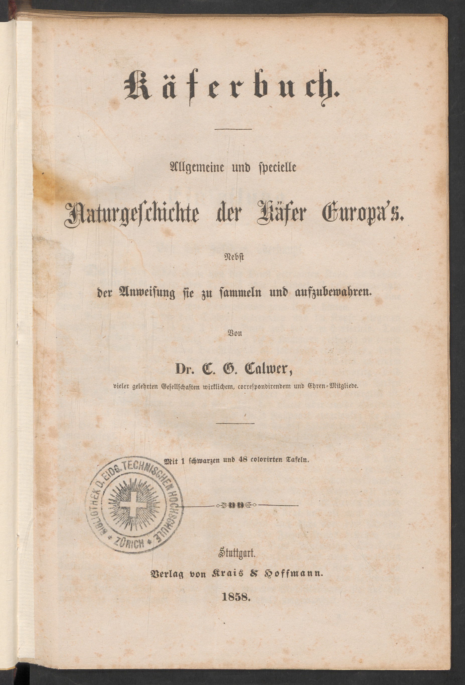 Käferbuch : allgemeine und specielle Naturgeschichte der Käfer Europas : nebst der Anweisung sie zu sammeln und aufzubewahren / von C. G. Calwer