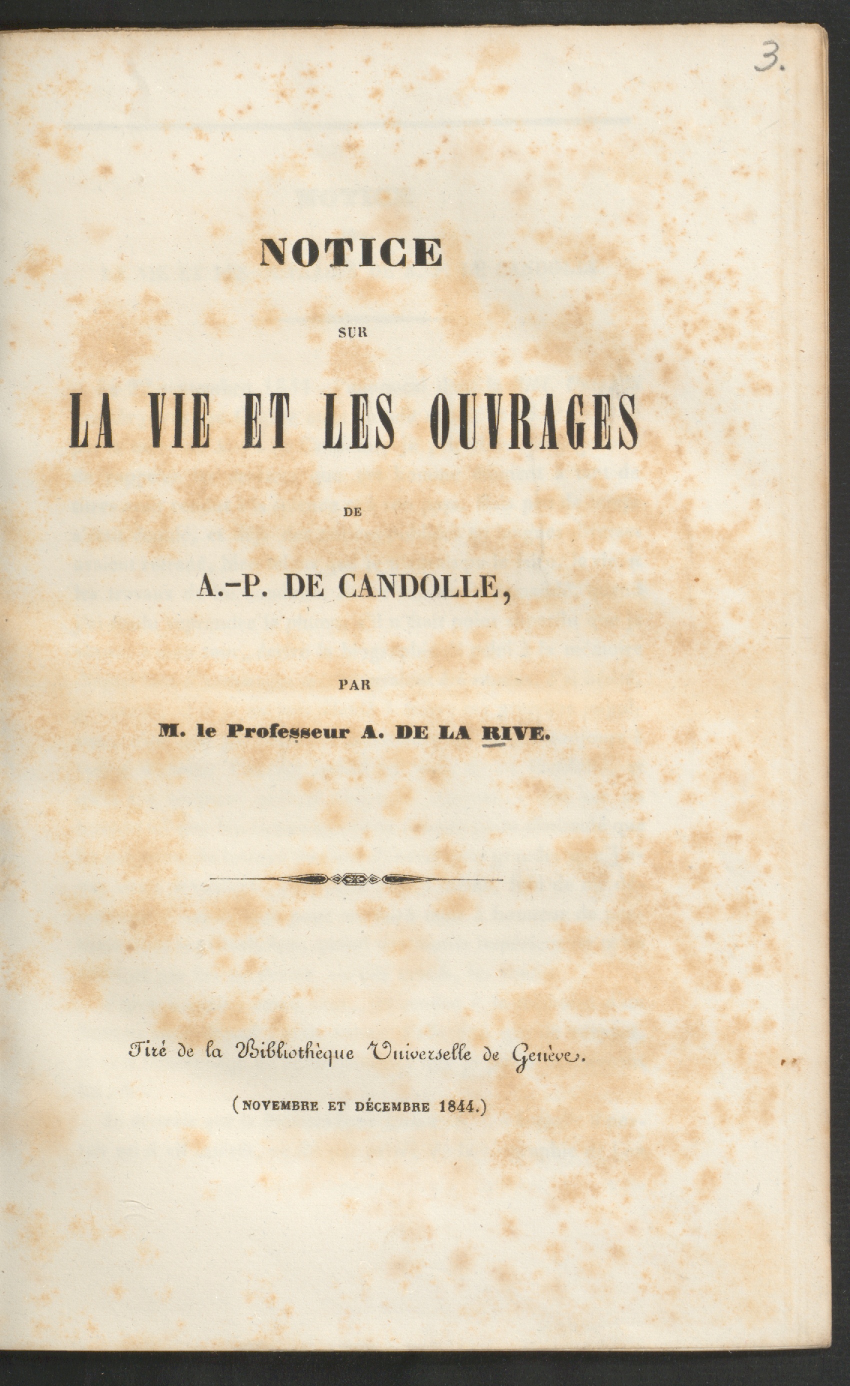 Notice sur la vie et les ouvrages de A.-P. de Candolle / par A. de la Rive