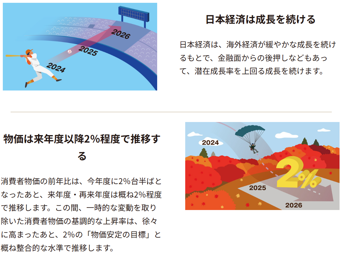 A day’s flight east, the Bank of Japan (日本銀行or Nippon Ginkō) has embraced visuals to communicate its current policy decisions. Since 2022 it has been offering a visual, plain-language companion to its quarterly ‘Outlook for Economic Activity and Prices’. The Bank’s designers have a keen eye on what resonates most with the Japanese, for instance their shared passion for baseball (Figure 3).