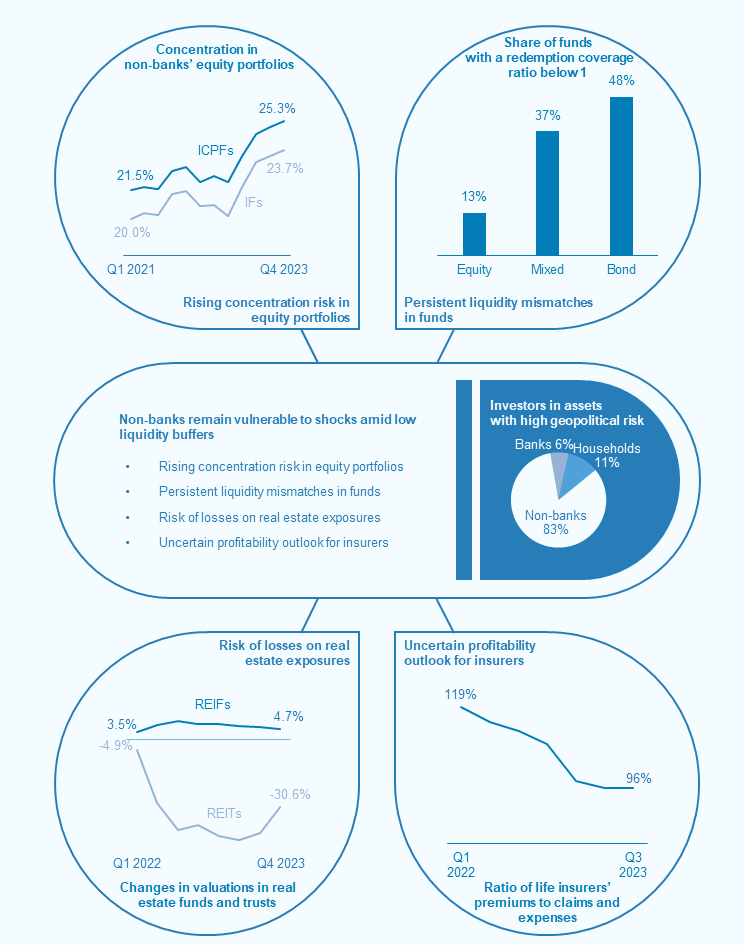 Geopolitical tensions may spark volatility and trigger adjustments in financial markets, which could be amplified by non-banks with low liquidity and high leverage