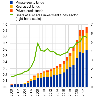 Euro area private markets have grown significantly in recent years, providing alternative funding sources for companies and diversification benefits for investors. While private markets are currently small relative to public markets and bank lending in the euro area, continued strong growth, financial innovation and opaqueness in private markets could contribute to financial stability risks. Adverse economic shocks could result in rising defaults, valuation corrections and losses for private funds and their investors. Additionally, such shocks may be exacerbated by multiple layers of leverage at company, fund and investor level, or by liquidity mismatches for some open-ended private funds. For banks, risks could arise from lending exposures to these markets, as well as from rising competition with private funds, which could incentivise lower underwriting and credit standards.
