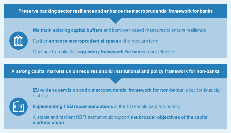 A resilient NBFI sector would help to promote and complement the objectives of the capital markets union. Policies supporting the resilience of the NBFI sector are key to safeguarding Europe’s financial stability. Furthermore, deep, integrated capital markets are essential to mobilise the kind of private risk-sharing that would help to enhance economic growth and smooth out asymmetric shocks. Making full use of Europe’s capital markets is also key to mobilising private investment in the green and digital transitions needed to enhance the EU’s productivity and competitiveness in a challenging geopolitical landscape.