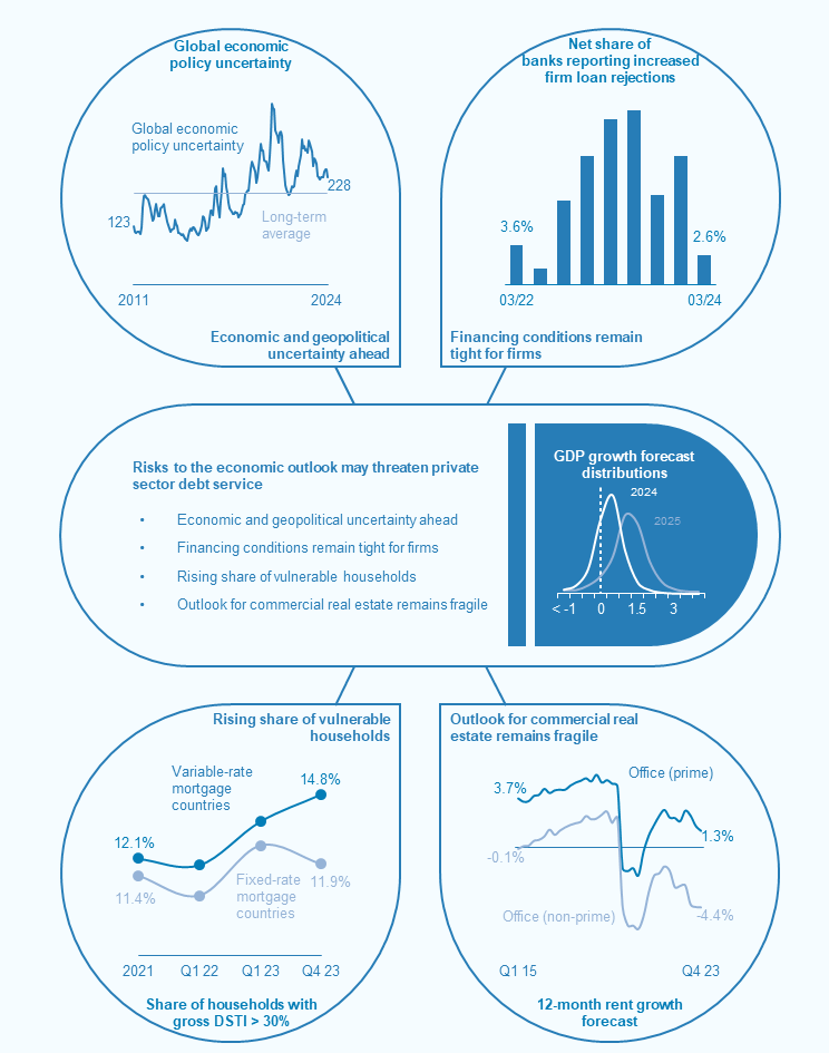 At the same time, geopolitical tensions are a significant source of risk for not only euro area financial stability but also global financial stability. Policy uncertainty remains high around the world in a year featuring so many major elections. In such an environment, the scope for adverse economic and financial surprises is elevated, and the risk outlook for euro area financial stability remains fragile accordingly.
