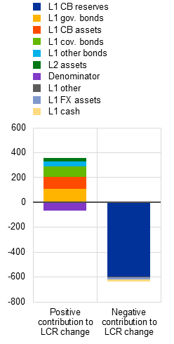 The LCR is calculated by dividing a bank’s HQLAs by its total net cash flows, over a 30-day stress period. Total expected cash outflows are calculated by multiplying the outstanding balances of various categories or types of liabilities and off-balance-sheet commitments by the rates at which they are expected to run off or be drawn down. Term deposits with maturity beyond 30 days have a 0% run-off rate, while the run-off rate for overnight deposits is between 3% and 10%. This means that a shift from overnight to term deposits has effectively reduced the expected outflows (LCR denominator).