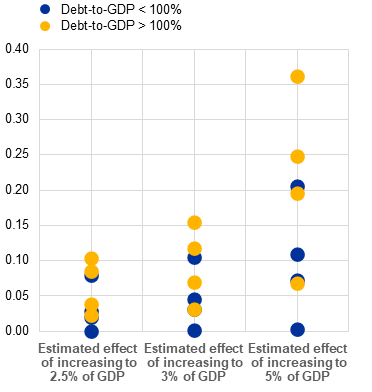 Further results from the model indicate that since 2020 yield sensitivities to changes in debt-to-GDP ratios have been significantly lower than in the preceding five-year period (2015-19). Model results illustrate the variability across countries; the estimated size of the yield increases is sensitive to model specifications.