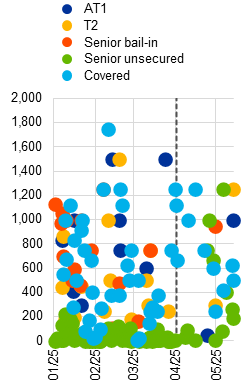 Unless potential growth can be raised, concerns about sovereign debt sustainability could re-emerge in some countries. Despite a post-pandemic decline, the government debt-to-GDP ratio is still above the long-term average for the euro area aggregate, unlike the corporate and household sectors (Chart 5, panel b). At the same time, the aggregate euro area public debt ratio remains well below that of international peers. Debt-financed increases in defence spending and further rising interest expenditures may complicate the path towards fiscal consolidation in some countries under the new EU fiscal framework and could cause debt levels to start rising again. This, together with structural headwinds to potential growth from factors like weak productivity, could rekindle concerns about the sustainability of sovereign debt. Any repricing of sovereign risk could spill over to the corporate and financial sectors via rating downgrades and higher funding costs.