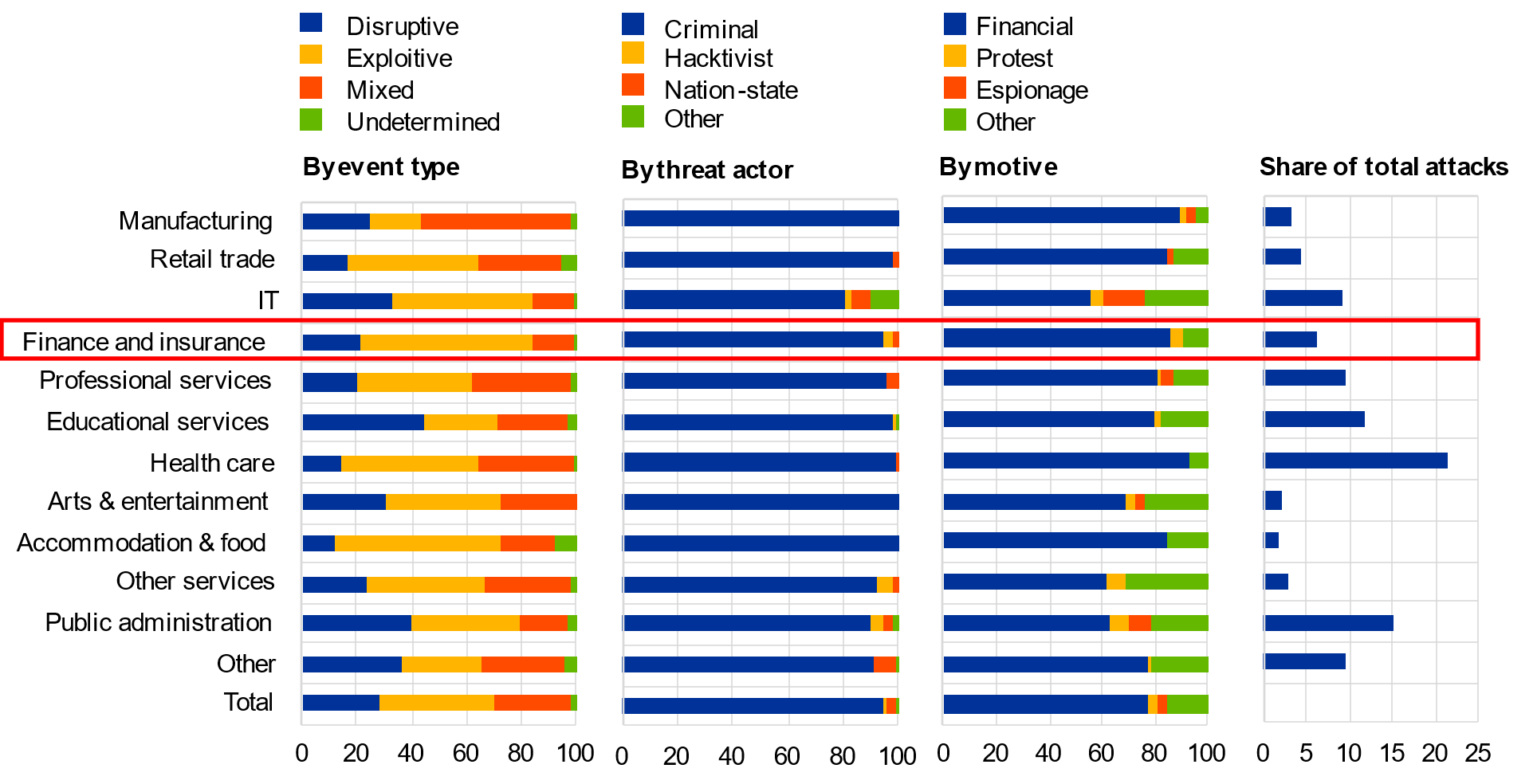 Sources: University of Maryland CISSM Cyber Attacks Database, Aldasoro et al. and ECB calculations.