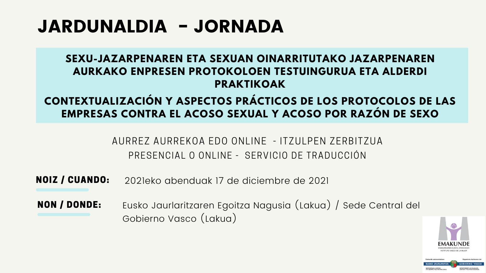 - Ponencia: Dña. Miren Edurne Lopez Rubia "Presentación del nuevo Protocolo de Acoso Sexual y por Razón de Sexo" (PDF, 300 KB)