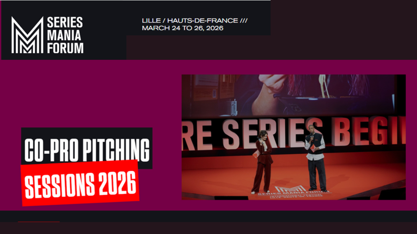 Series Mania Forum ha obert la convocatòria per a les Co-Pro Pitching Sessions 2026. La data límit per presentar-s’hi és l'1 de desembre de 2025.