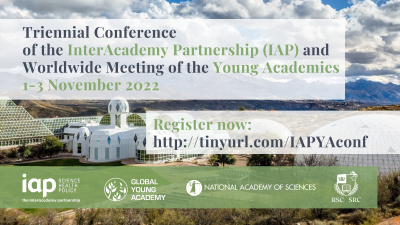 The conference will be co-hosted by the U.S. National Academy of Sciences (NAS) and the Royal Society of Canada (RSC), and is co-organized by IAP, the Global Young Academy, the U.S. National Academies of Sciences, Engineering, and Medicine, the RSC College, and the U.S. National Academies’ New Voices Program.