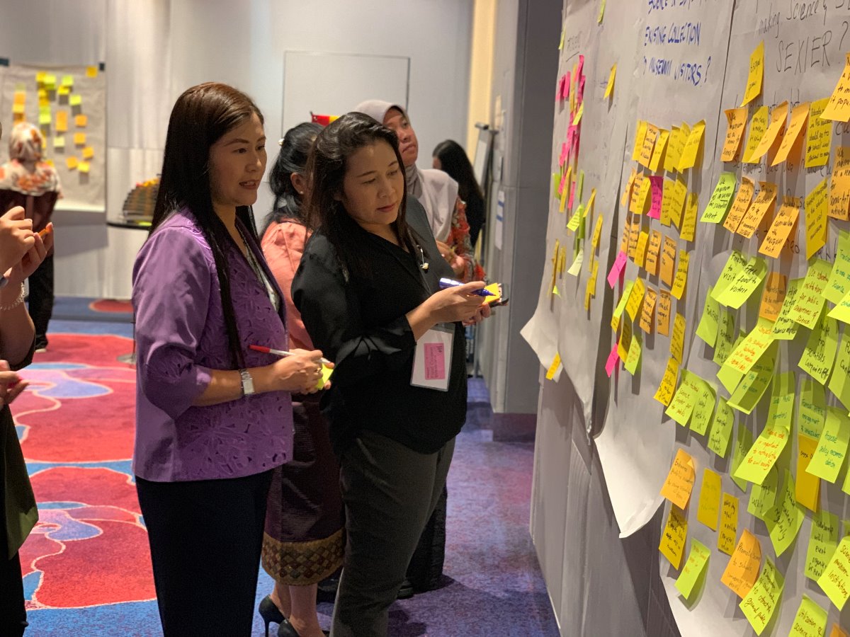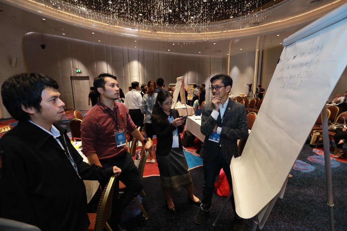The keynote speaker, Mr. Royce Tan from Bosch Rexroth Sdn Bhd, Malaysia, highlighted the necessity of linking science and technology to the society by introducing success stories that solve important national and global issues, e.g. the 2011 Thailand Floods and other extreme climate conditions. Examples of programs that engage the society with the SDGs, link the national museums to science education and connect scientific findings to the society were presented by four invited speakers. The talks were followed by one-and-a-half-day workshop where creative problem solving tools were implemented to encourage an ideation of solutions that address current problems. To promote science and SDGs, most of the national and science museums in the ASEAN State Members shares a number of common problems, including the lack of contents, the decrease in the number of visitors, the lack of public awareness, and the limited resources and funding. All of the participants actively participated in the discussion and came up with implementable plans to address aforementioned problems. It became an evidence of how crucial it is for the young scientists to expand their engagement in developing scientific contents for the museums. In turn, it is also beneficial for the scientists as the national museums are practical platforms for them to connect with the community.