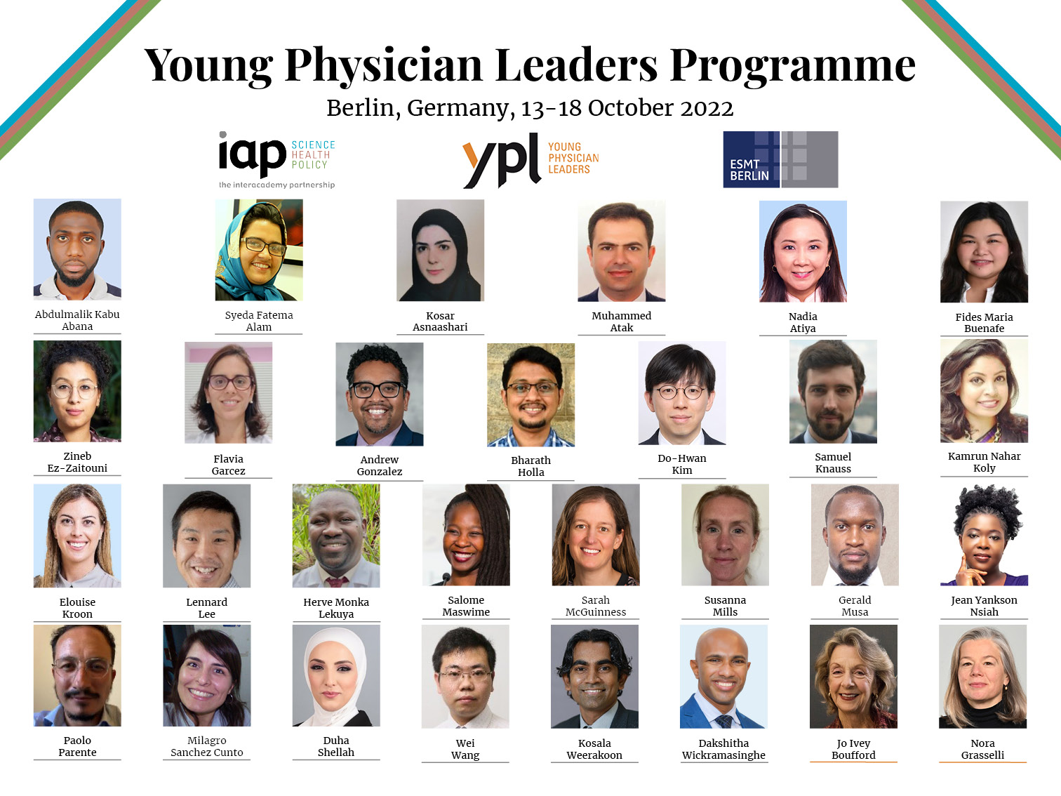 The 2022 cohort will meet in Berlin, Germany, on 13 October 2022, and after the YPL leadership workshop they will attend the 2022 World Health Summit (WHS), a leading international forum for global health, that will take place in Berlin and virtually from 16 to 18 October 2022. The IAP YPL session will take place on 18 October at 11AM (Berlin time):