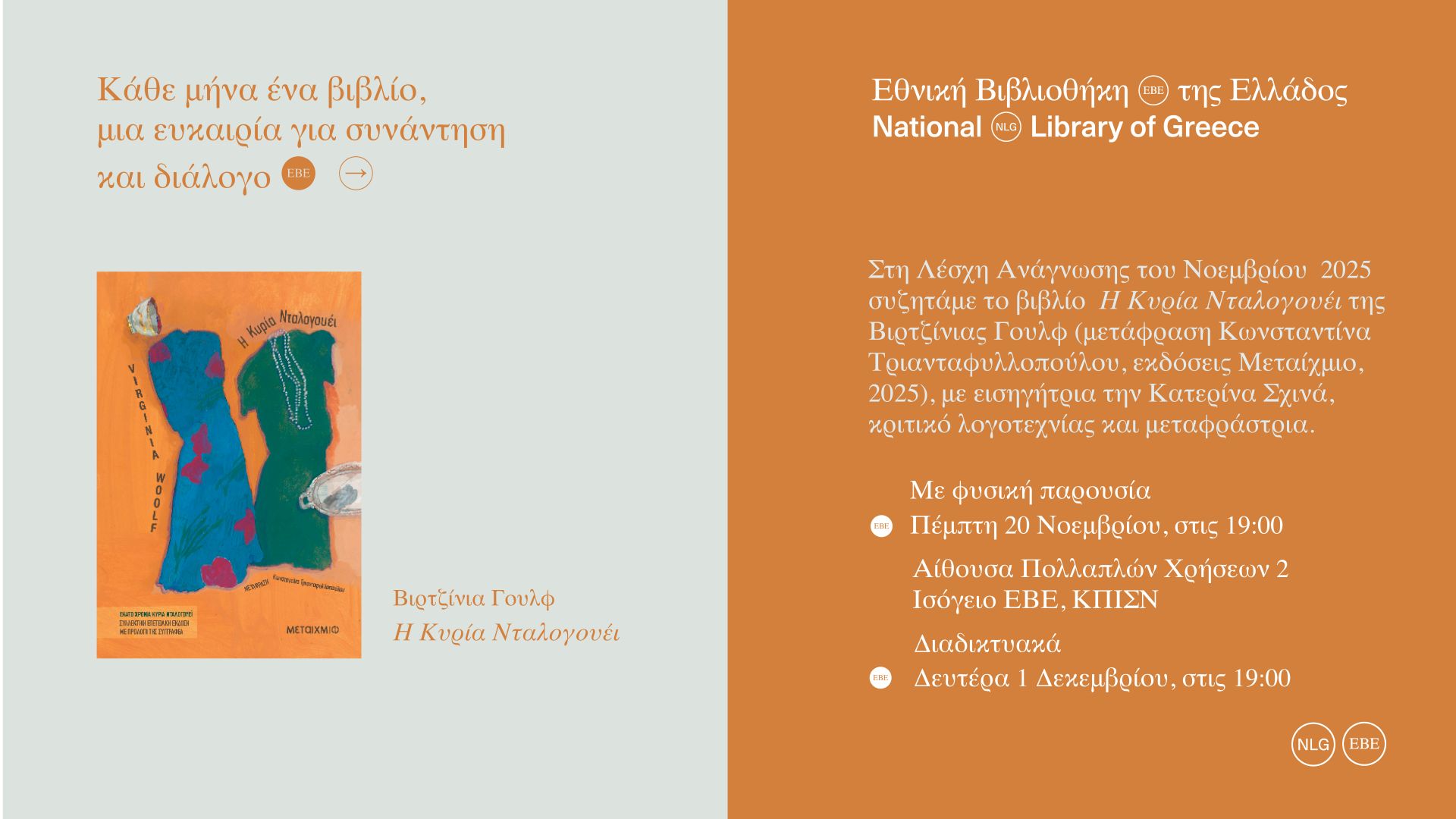 Το Δίκτυο Ελληνικών Βιβλιοθηκών της Εθνικής Βιβλιοθήκης της Ελλάδος συγκροτείται για να βοηθήσει τις ακαδημαϊκές, ερευνητικές, δημόσιες, δημοτικές και σχολικές βιβλιοθήκες να βελτιστοποιήσουν τις υπηρεσίες που προσφέρουν στο κοινό τους καθώς και να αναπτύξουν νέες. Επισκεφθείτε τον ιστότοπο του Δικτύου Ελληνικών Βιβλιοθηκών για να ενημερωθείτε σχετικά με προγράμματα και δράσεις σε όλη την Ελλάδα. Περισσότερα