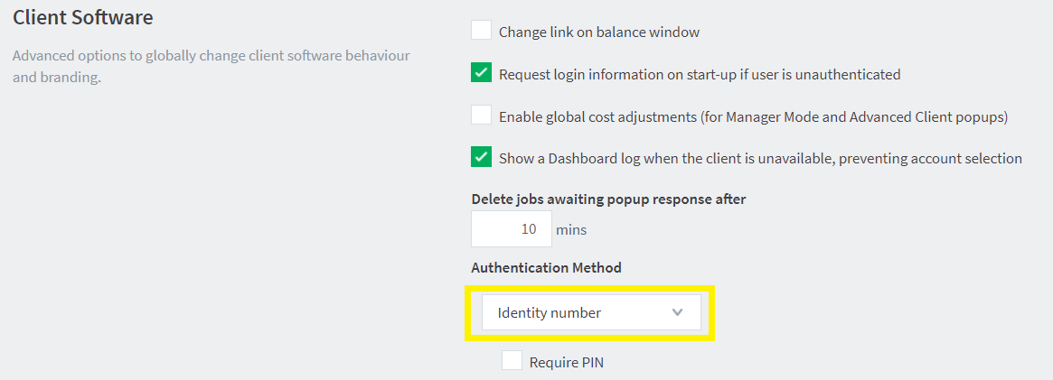 - If Require PIN is selected, users must enter both an Identity Number and a PIN to authenticate.