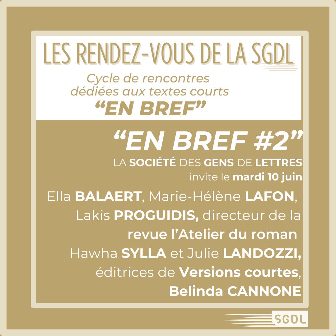 La SGDL a le plaisir de vous convier à la deuxième soirée du cycle "En BREF", dédié aux textes courts, à leurs auteurs, aux maisons d’édition et revues qui les défendent. Nous vous attendons le mardi 10 juin à 19h, Hôtel de Massa, pour une table ronde..