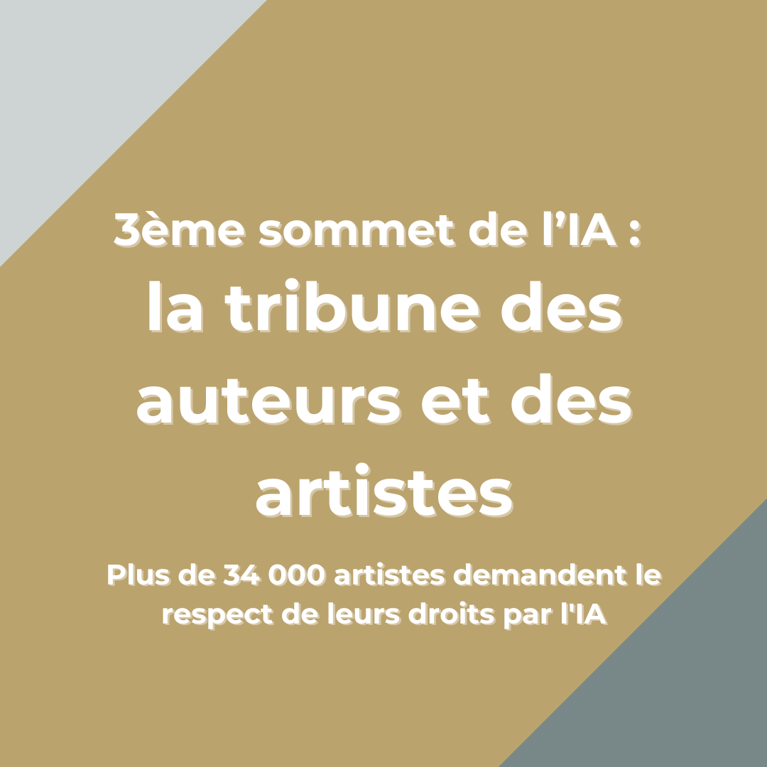 Plus de 34 000 artistes ont signé la tribune lancée par les organisations d’artistes et d’auteurs : ADAGP, Adami, Sacem, Scam, SGDL, Spedidam, pour interpeller les participants du 3ème Sommet mondial de l’intelligence artificielle sur le respect des droits des artistes.