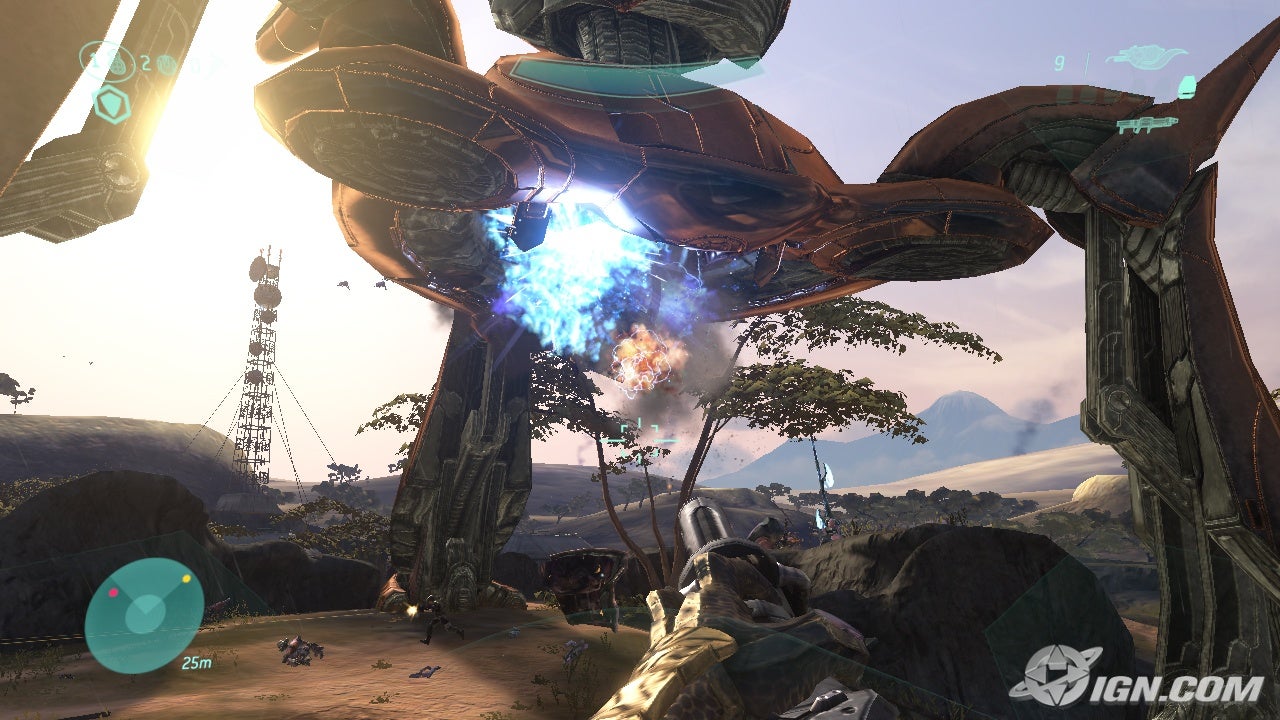 But there's one big problem in the game; it looks kinda crappy on HD screens. Huge jaggies everywhere. I've read different explanations as to why; either the max resolution is only 640p (I don't quite buy it; 720p is way more likely. Update: Bungie confirms they render at 1152x640) or else they've limited themselves to simple 2xAA instead of better anti-aliasing. (A friend tells me his beautiful Xbox 360 game does edge detection and smoothing. Cool!) I guess it's a tradeoff; they have some impressive HDR lighting and very complex models and the framerates have to be solid. And of course once the bullets are flying you're not watching the jaggies. Still, it's a shame.