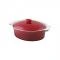 Овална керамична тава с капак, подходяща за приготвяне на ястия на фурна, включително супи, яхнии и други.