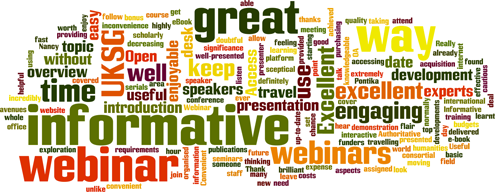 The webinars are a fantastic opportunity to listen to an expert speaker without any travel costs. Registrants can listen to the webinars live and take part in Q&A or watch a recording at a time that best suits their time zone or schedule. The hashtag for UKSG webinars is #UKSGwebinar which attracts considerable commentary during the live sessions. They are open to all (you do not need to be a member of UKSG).