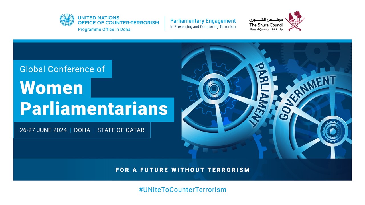 A Global Conference of Women Parliamentarians will be held in Doha, State of Qatar on 26 and 27 June 2024 under the theme “The Role of Women Parliamentarians in the Development, Implementation, and Oversight of Counter-Terrorism and Prevention of Violent Extremism Legislation, Policies, and Strategies.”