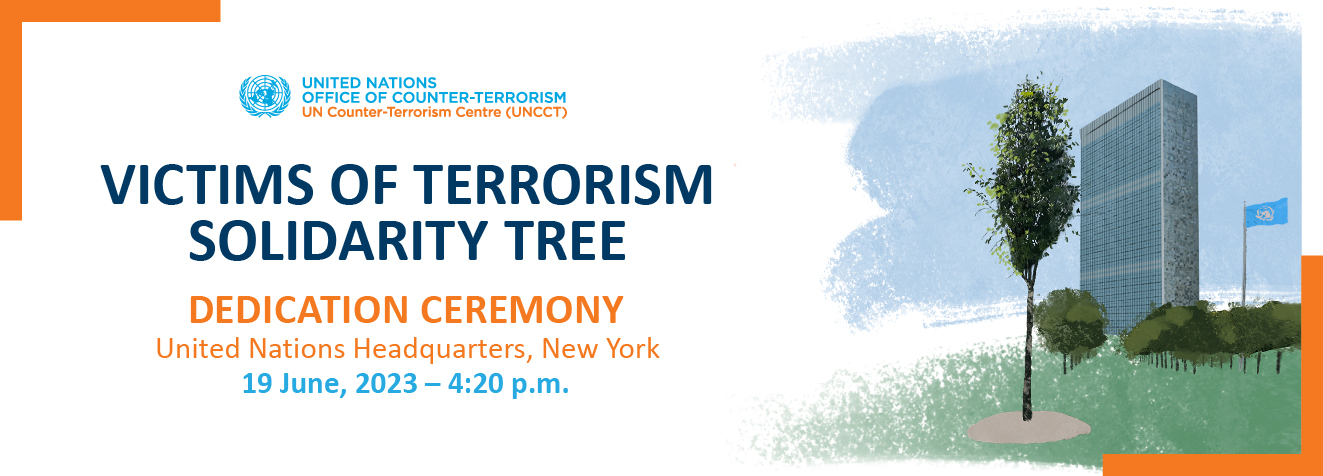 The dedication ceremony of the United Nations Victims of Terrorism Solidarity Tree was held on themargins of the Third High-Level Counter-Terrorism (CT Week).The event was organized by the United Nations Office of Counter-Terrorism (UNOCT) in collaboration with the Group of Friends of Victims of Terrorism, a forum of 37 UN Member States and two regionalorganizations that seeks to promote and protect victims’ rights and advocates for their diverse needs.Over 70 Member States representatives, partners, victims and survivors of terrorism joined Under-Secretary-General Voronkov for the tree planting ceremony in the gardens at UN Headquarters.