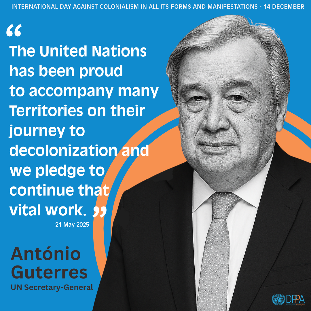The General Assembly of the United Nations adopted resolution 80/106 on 5 December 2025 which proclaims 14 December as the International Day against Colonialism in All Its Forms and Manifestations.