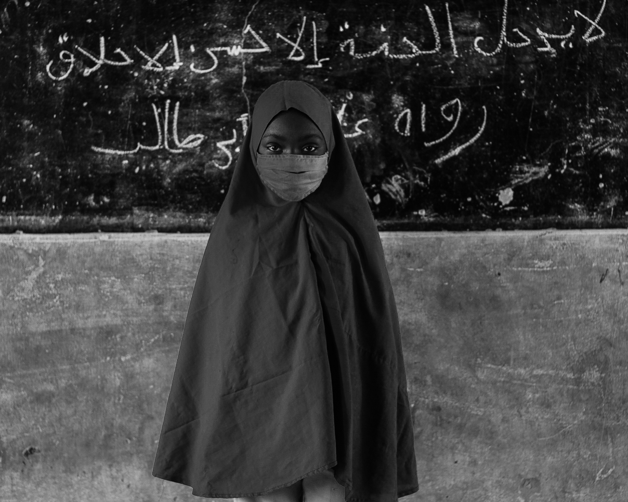 A public school pupil wearing a covid face mask in her classroom. (July, 2021) Photo/Fatima Yusuf