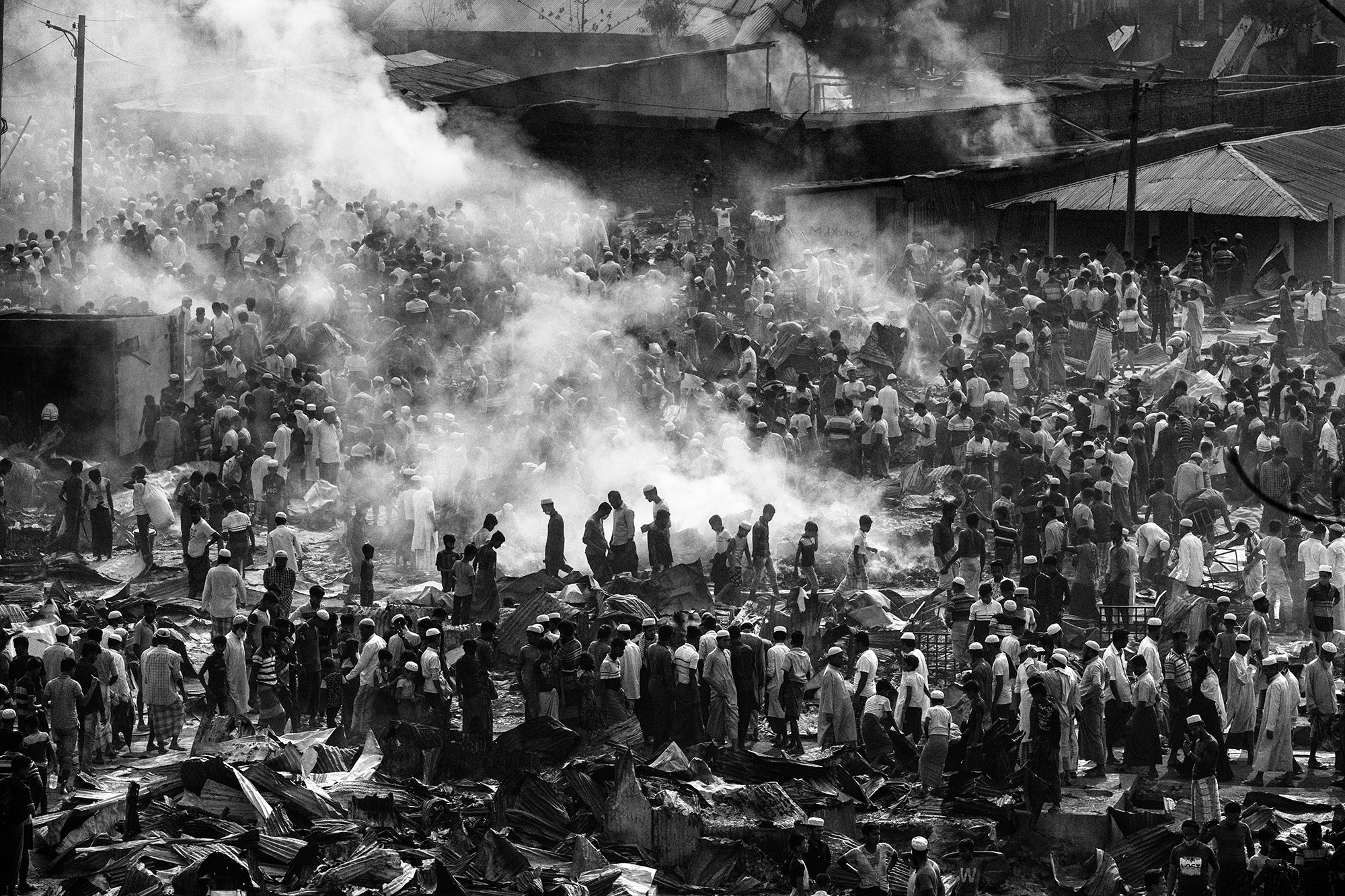 Rohingya refugees search for their belongings after a massive fire that tore through a sprawling refugee camp in southern Bangladesh. The fire killed at least 15 people and some 400 others are missing. (March, 2021) Photo/M. Yousuf Tushar