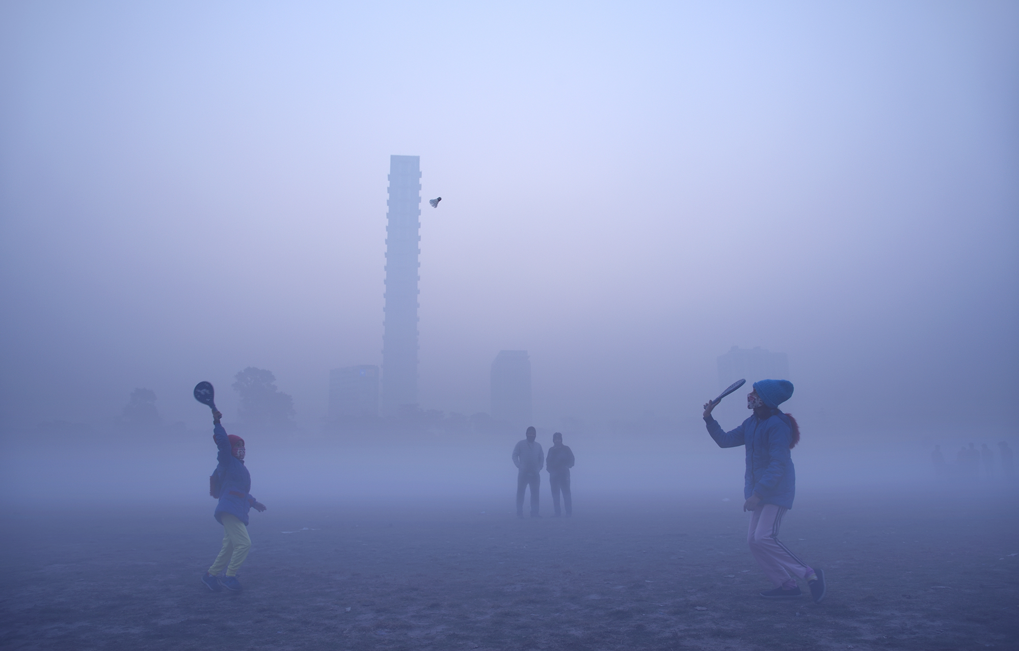 After the lockdown of Covid-19 lifted, a family experiences the morning mist and a short outing in the heart of Kolkata, India. (January, 2021) Photo/Rajesh Dhar