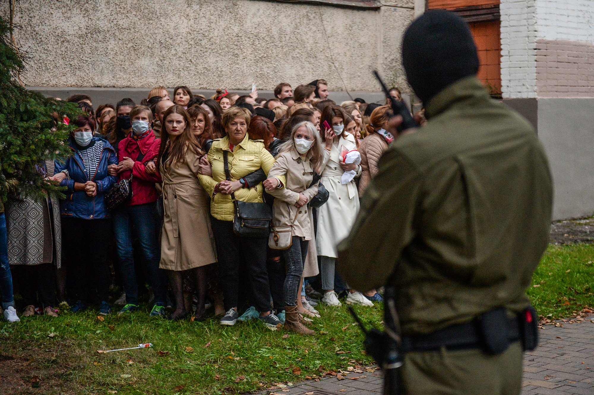 Belarus women resist attempts by the Police to detain them during the protest rally that was held on September 8, 2020, in support of opposition leader Maria Kolesnikova. (September, 2020) Photo/Yauhen Yerchak/EPA