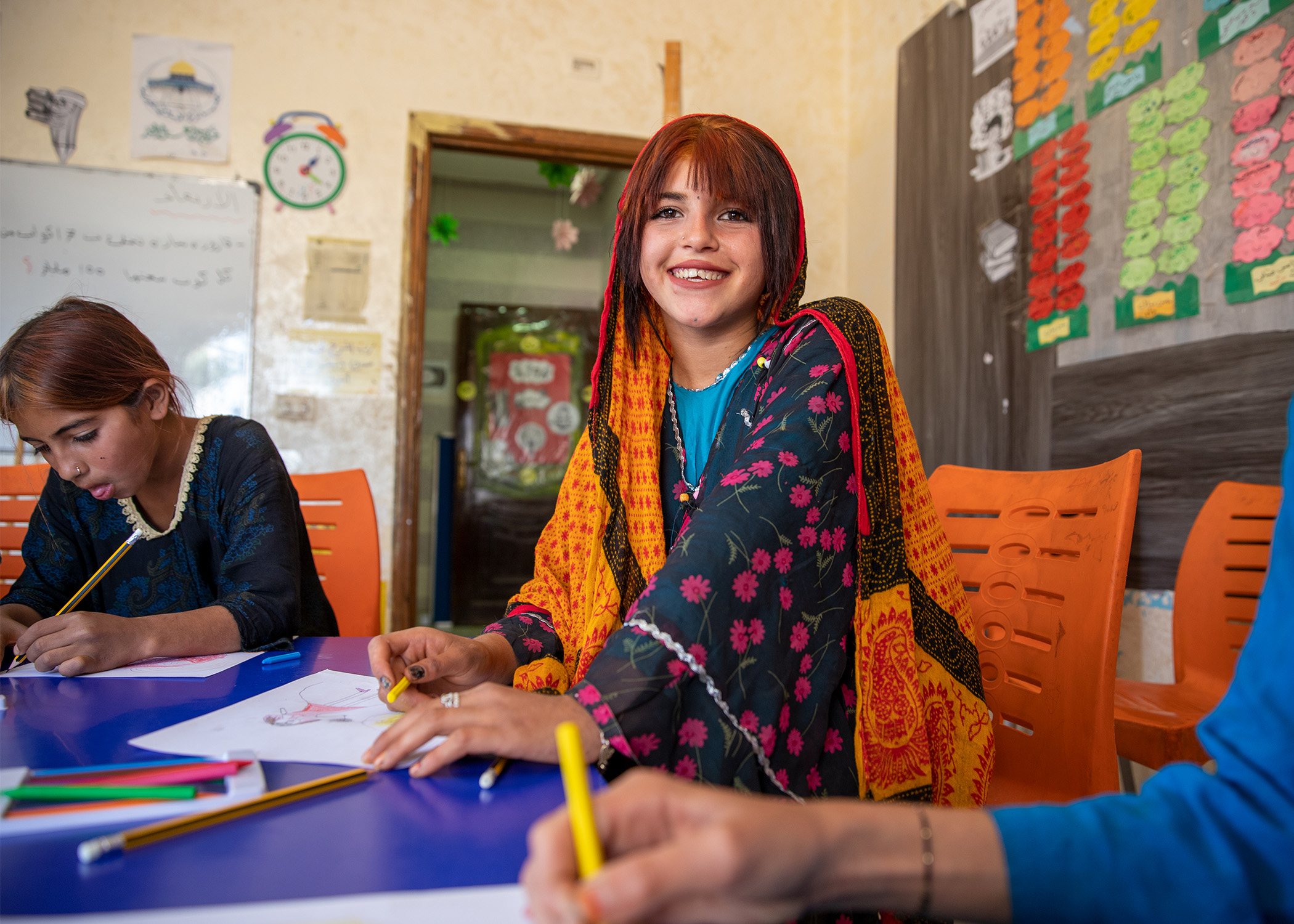 Ghazala, 13, found her voice creating art at a Makani centre, meaning 'My Space' in Arabic. More than 2,500 vulnerable children from the Dom community are among those benefitting from education, psychosocial support and creative activities provided by UNICEF and partners, helping them dream big. Photo: UNICEF Jordan/AbdelMajid El-Noaimi