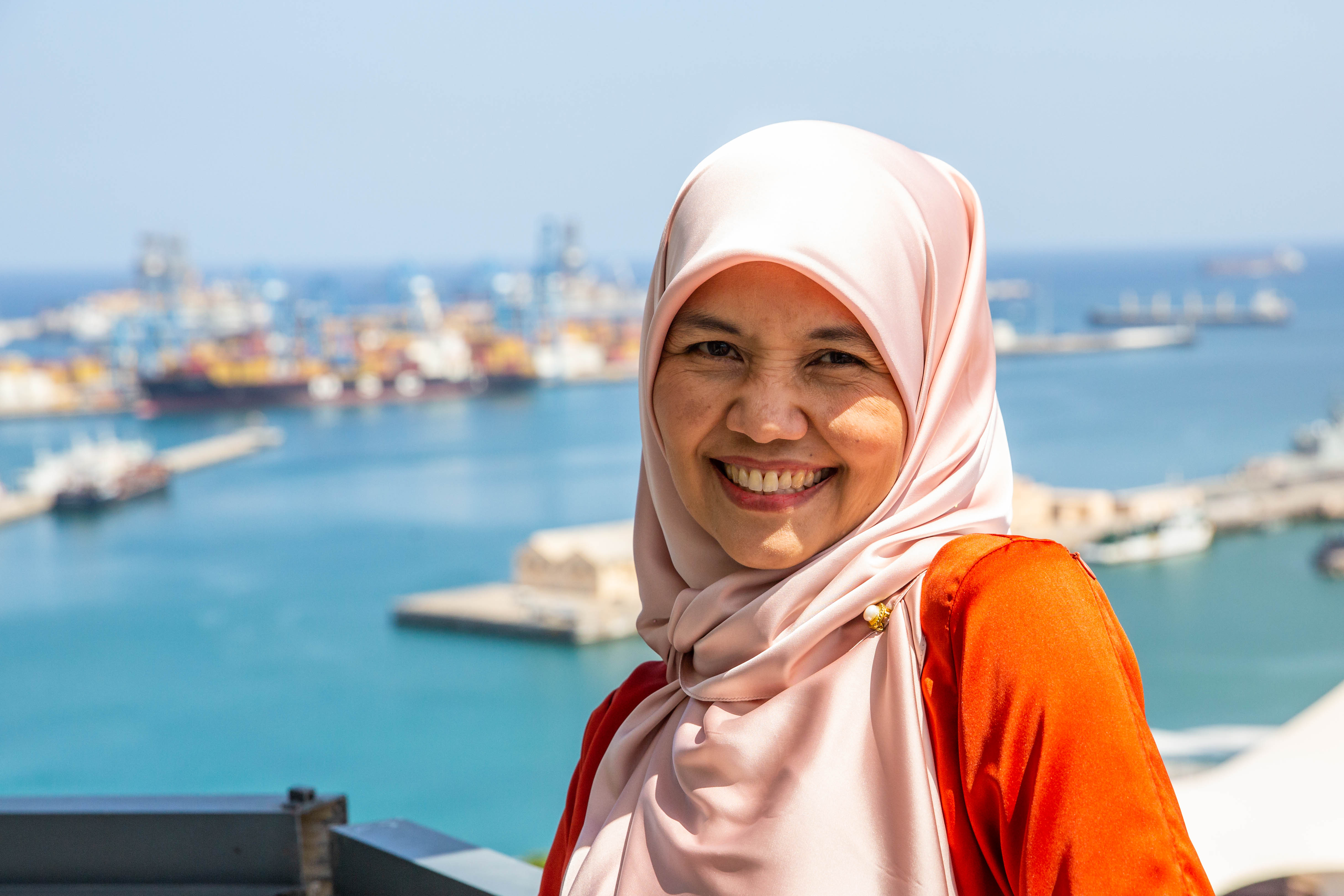 Rabiah works at the Johor Port Authority, which partnered with UN Trade and Development (UNCTAD) to design and implement a water-saving system. UNCTAD’s global network of certified port managers is advancing best practices, reinforcing South-South cooperation, and driving progress on the Sustainable Development Goals (SDGs). Photo: Mika Jouhki