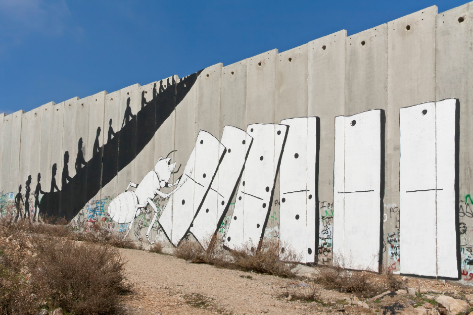 This exhibit examines the plight of the Palestinian people, focusing on the wall built in the Occupied Palestinian Territory. It explores this through the words of advocates and public personalities, and through images from artists and human rights activists who have used the wall as a canvas to express their solidarity with the Palestinian people.