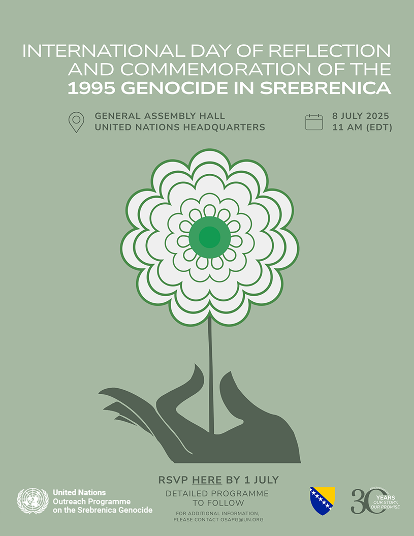 The 2025 observance of the International Day of Reflection and Commemoration of the 1995 Genocide in Srebrenica was held on Tuesday, 8 July 2025 in the General Assembly Hall, United Nations Headquarters, New York. The observance marked the 30-year anniversary of the 1995 genocide in Srebrenica.