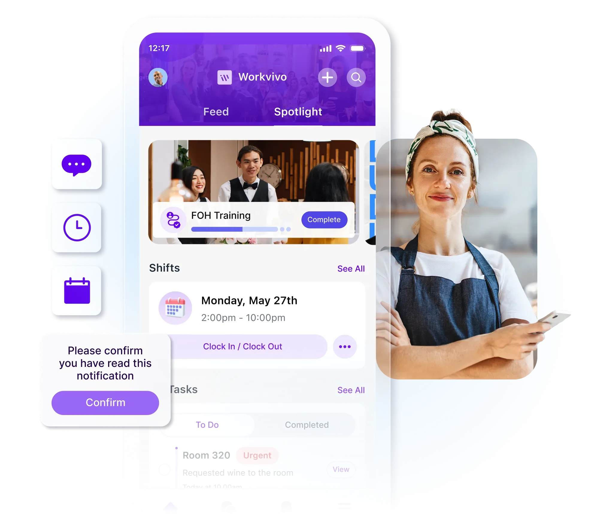 - Highlight hard work with shout-outs and awards that keep servers, concierges, and kitchen staff engaged